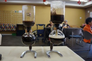 リハリビング神戸西では、毎週木曜日に喫茶店をオープンしています。サイフォンで入れた本格的なコーヒーと、お菓子をご提供。月に1回は、ご入居者の鈴木様と岡下様が作って下さる愛情たっぷりの和菓子をお出ししています。