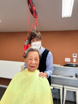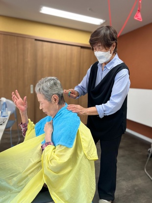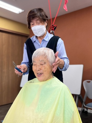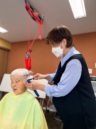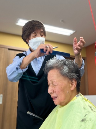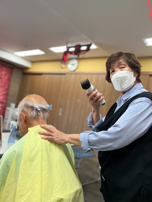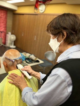 定年を迎える際に、美容師の資格を持っておられたので「今後、美容師としての技術と豊富な経験を利用者の皆さんのために生かしていただけないか」と相談したところ、快く引き受けていただき、もう10年以上実施していただいています。