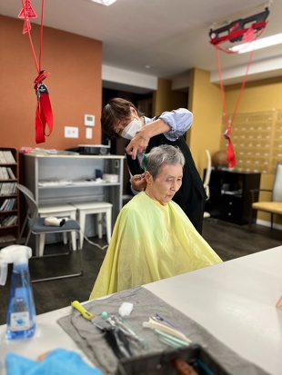 ヘアカットサービスは多くのご利用者様から好評で、「先月は来れなかったから、髪が軽くなってスッキリしたわ♪」「思い切って短くしたけど、思っていたより良くなってるわ」といった声が上がりました。美容師さんも「喜んでもらえるからやりがいがあります」と話されていて、私たちスタッフもその喜びを共有しています(^^♪。