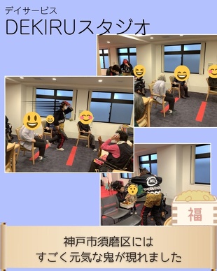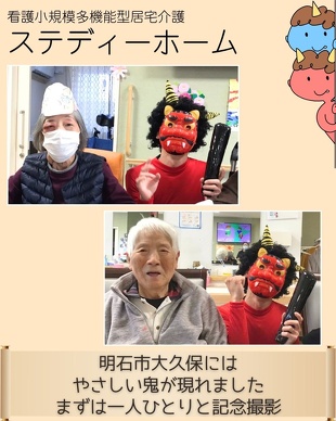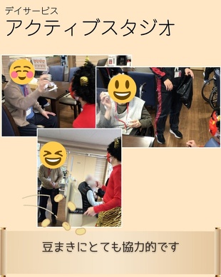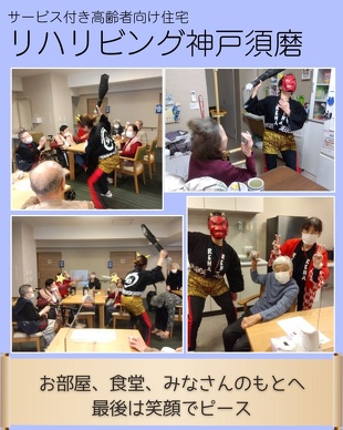 各施設に鬼が出現し、利用者の皆様と一緒に豆まきを行いました。