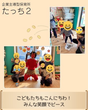 託児所では、鬼の姿に驚いて泣いてしまうお友達もいましたが、これも成長の一環。