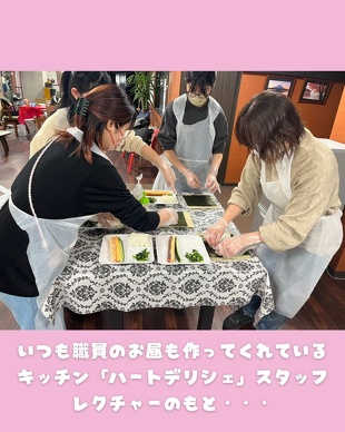 今回の講師は、いつも神戸市西区エリアの事業所のお食事と職員の昼食を作ってくれているセントラルキッチン「ハートデリシェ」のスタッフの皆さんです❤️