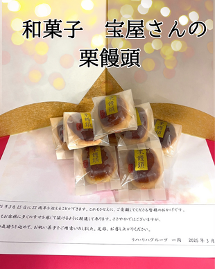 当日はご利用者様、ご入居者様のお食事に神戸市須磨区にある和菓子屋「宝屋」さんのお饅頭をおつけさせていただきました。