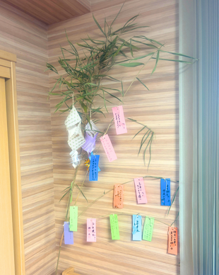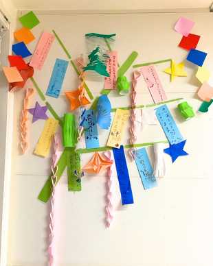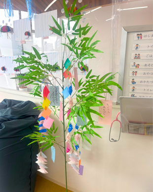 これからみんなで願いごとを書いた短冊や、折り紙で作った飾りをつけて、どんどん華やかに仕上げていく予定です!