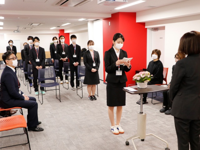 2022年04月01日(金) ブログ 2022年4月1日、新卒入社式を開催しました 2022年4月1日、新卒入社式を開催しました リハ・リハにも、新卒新入社員の11名の仲間が加わりました!入社式では少し緊張した表情でしたが、先輩スタッフに見守られながらしっかりと辞令を受け取りました。社会人として大きな一歩を踏み出した彼らが、これからリハ・リハで活躍してくれることを期待しています!本日から新入社員研修がスタートします。みんな、頑張って!