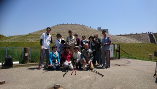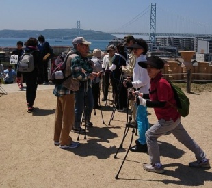 介護予防の話や歩き方のポイントなどを講話させて頂いたあと。兵庫県最大規模の古墳『五色塚古墳』まで片道およそ1kmの道のりをR9-STICKを体験して頂きながら、晴天の下歩いてきました。