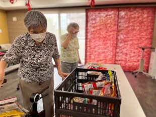 また、業者の方も暑さを配慮して商品を準備されており「おやつの時間を楽しんでいただきたいので、チョコレートなど溶けやすい商品はなるべく避けて準備しています」と話されていました。入居者様のことを考えたこの工夫に、嬉しく感じました。