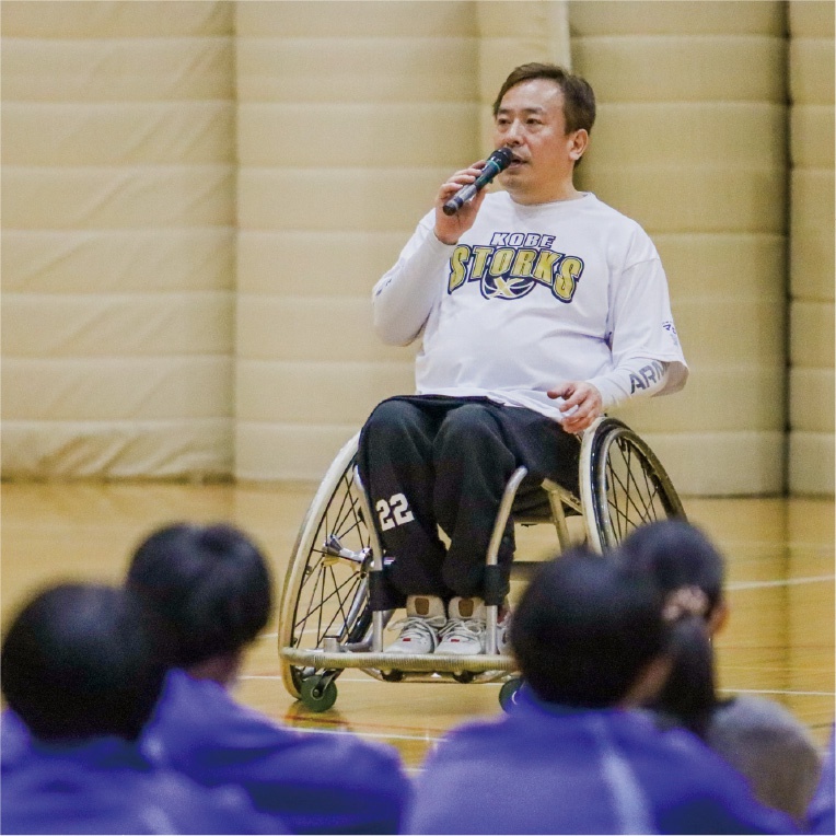 また、競技だけでなく車椅子バスケットの体験から小・中・高校への学校訪問を行い、人権教育の一貫で講話なども行っているチームです。