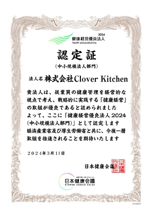 株式会社セラピット・株式会社REHA・LIBERO・株式会社Clover Kitchen『健康経営優良法人2024』に認定されました!