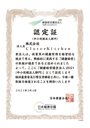 株式会社セラピット・株式会社REHA・LIBEROが、経済産業省と日本健康会議が共同で実施する『健康経営優良法人2021』 に3年連続で認定され、株式会社セラピットは上位500法人にも選出されブライト500に認定されました。株式会社Clover Kitchenも初めて認定されることとなりました。