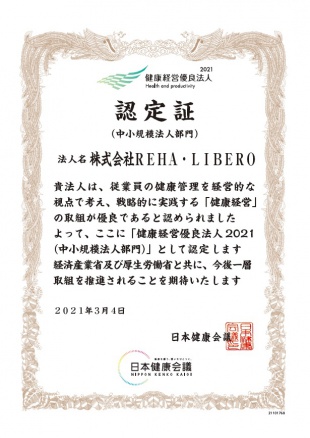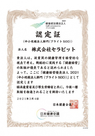 株式会社セラピット『健康経営優良法人2021 ブライト500』・株式会社REHA・LIBERO・株式会社Clover Kitchen『健康経営優良法人2021』に認定されました!