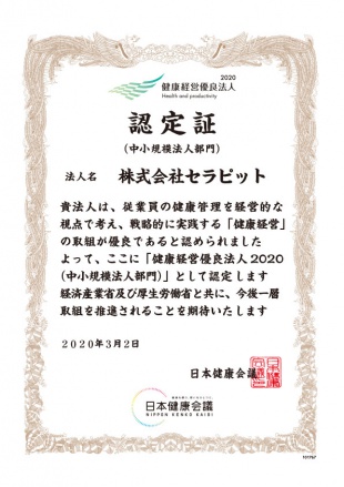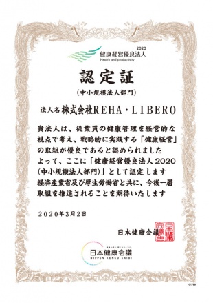 株式会社セラピット・株式会社REHA・LIBEROが、経済産業省と日本健康会議が共同で実施する『健康経営優良法人2020』 に2年連続で認定されました。