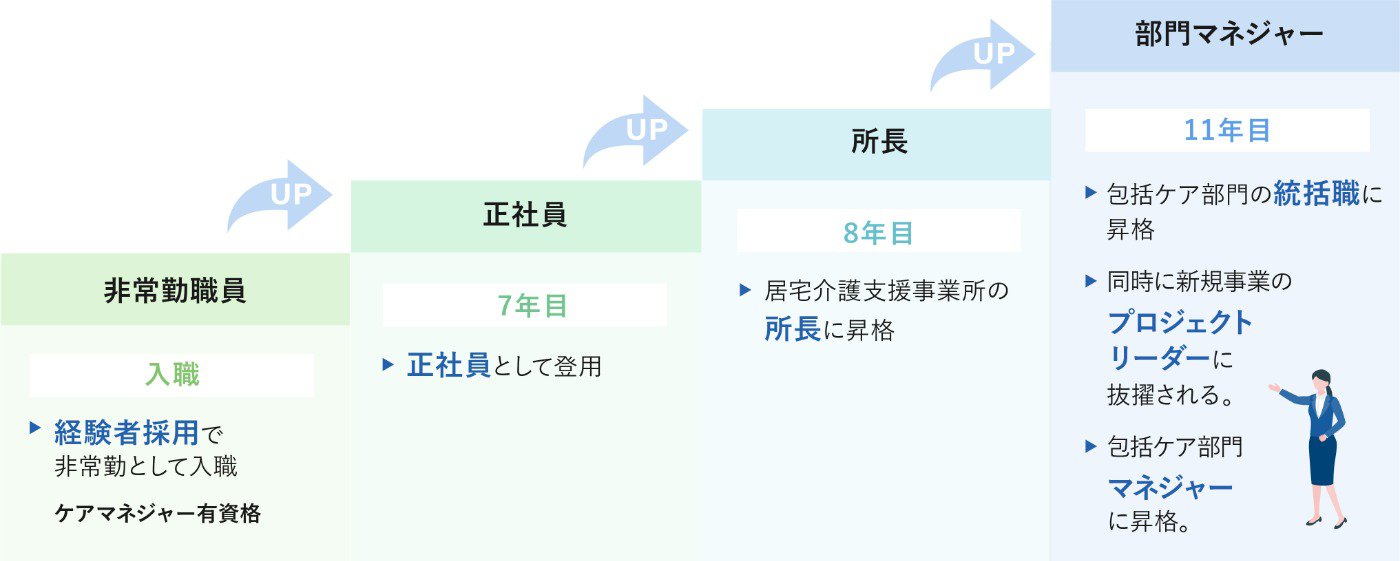 入職時はお子様が小さかったため非常勤として勤務していたが家庭環境が整うとともに正社員として登用される。