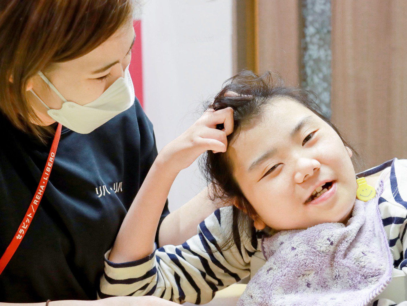 私は今、高齢者の方へのリハビリだけではなく、小児分野にも関わらせていただいています。リハ・リハキッズに通うこどもたちのなかには、医療的ケアが必要で、公園に行ったりイベントに参加したりすることにも消極的になるケースがあります。そこを私たちが関わることで少しでも解消できれば、こどもたちやご家族の世界も大きく広がると思います。日々の暮らしのなかでできることが増えて、その喜びを一緒に噛みしめられることがなによりの魅力だと思います。また職場では、リハビリ職以外にも、看護師、保育士、介護士の多職種が連携しており、専門分野以外の学びも沢山あります。多職種が連携しながら、それぞれの強みを生かして、お互い切磋琢磨できる環境は素晴らしいと思います!