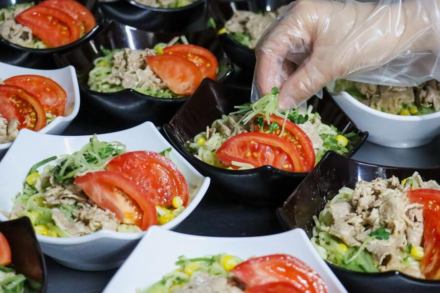 - キッチンの早朝調理スタッ セントラルキッチン ハートデリシェ 神戸市西区