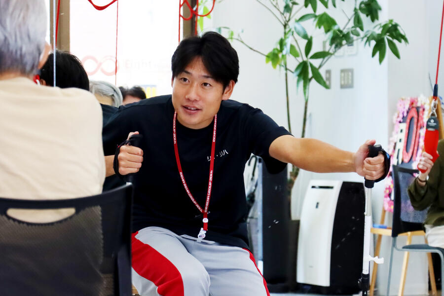 リハビリ特化型のデイサービスで、ご利用者へ運動指導やトレーニングのサポート、介護業務全般を行います。